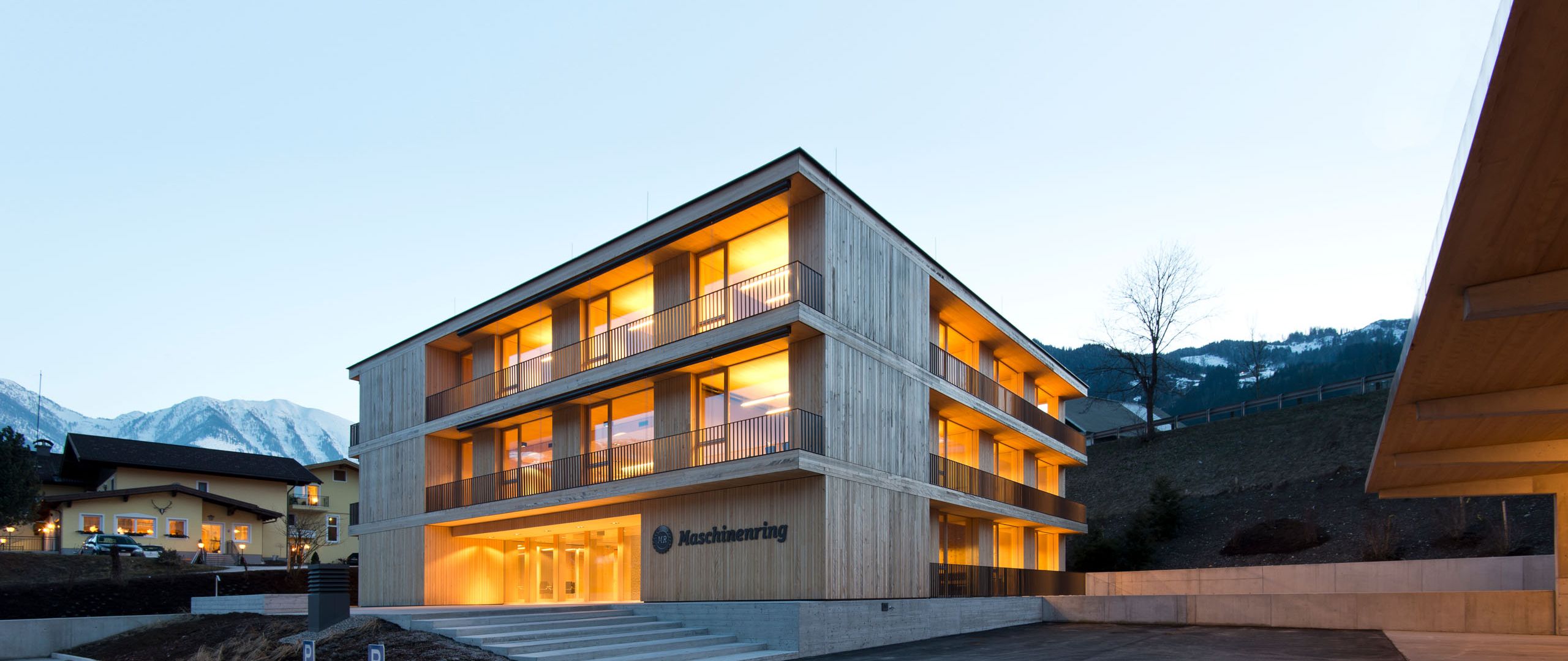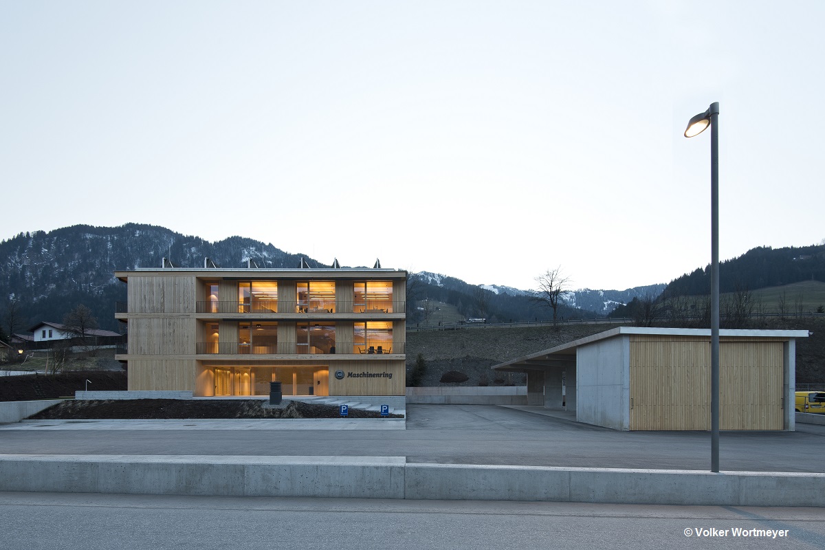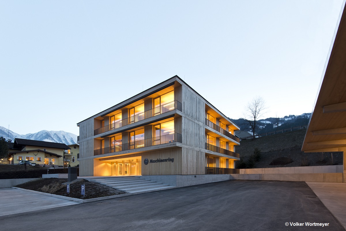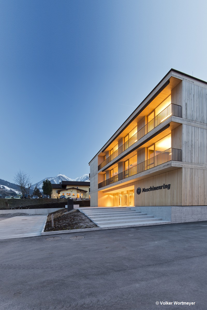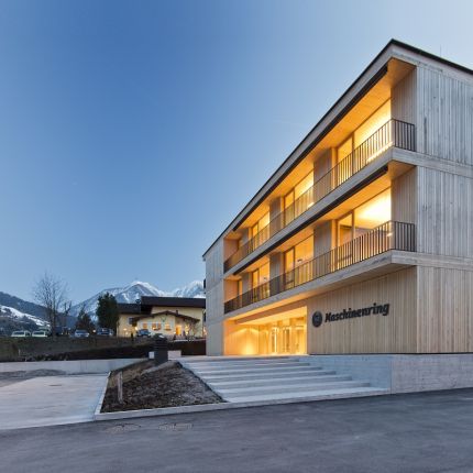 Die in Massivholzbauweise errichtete Landesgeschäftsstelle der Maschinenringe in St.Johann im Pongau zeigt nach außen hin die Bedeutung von Holz für die Wertschöpfung der ländlichen Region, wie auch für das Unternehmen.