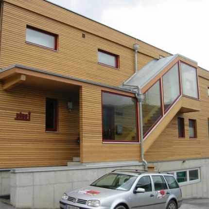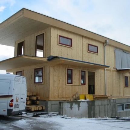 Bürogebäude in Holzmassivbauweise: Wände aus Brettsperrholzplatten (KLH), Decken aus Brettschichtholzelementen