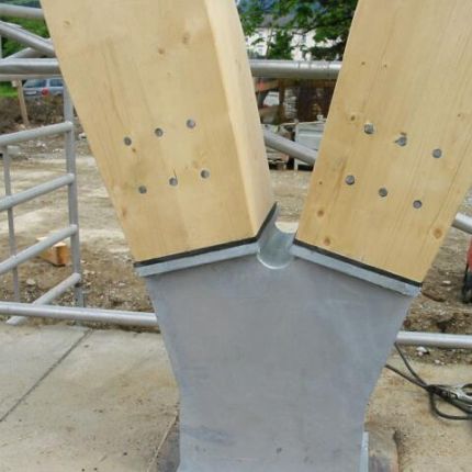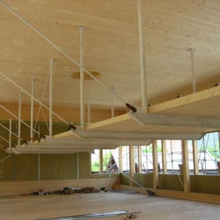 - Dachplatten aus Brettsperrholz (Unterspannung mit Stahl)