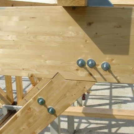 Knotenverbindungen mit Schlitzblechen und selbstbohrenden Stabdübeln (System WS der Fa. SFS), Fassadenverkleidung mit Sandwichpaneelen